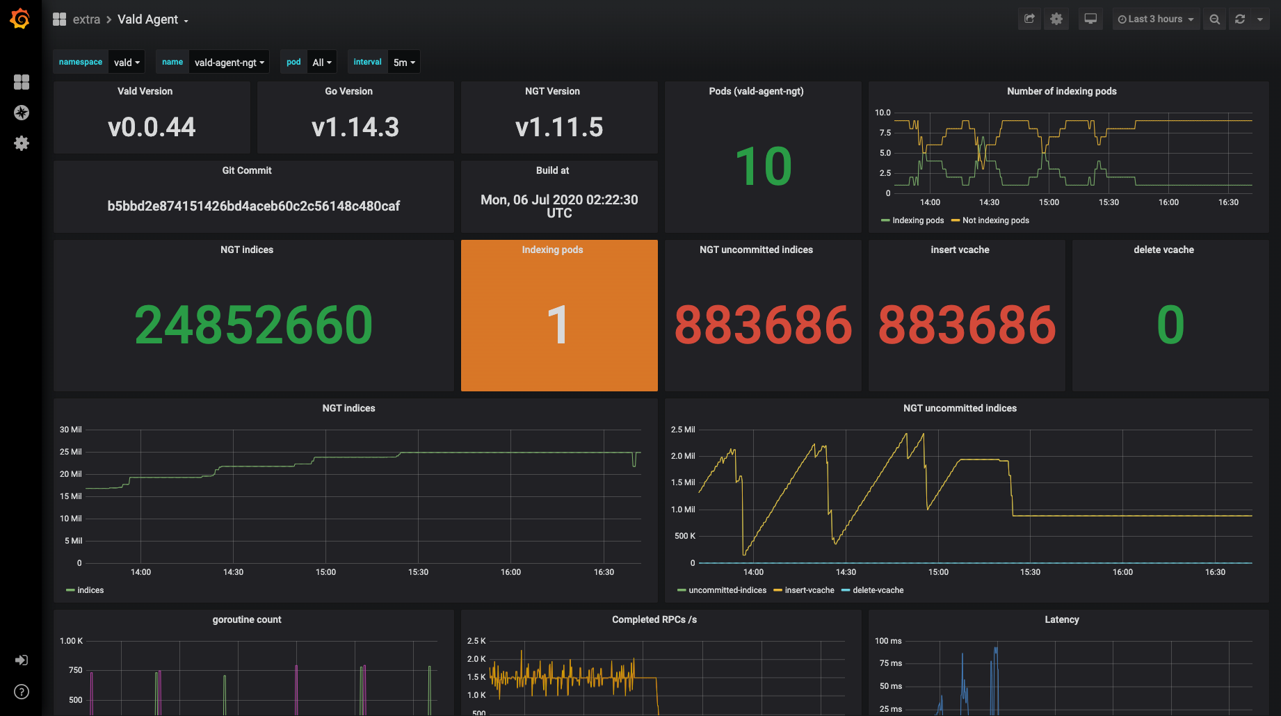 Now it’s ready to scrape Vald metrics. Please deploy Prometheus and Grafana to your cluster.
